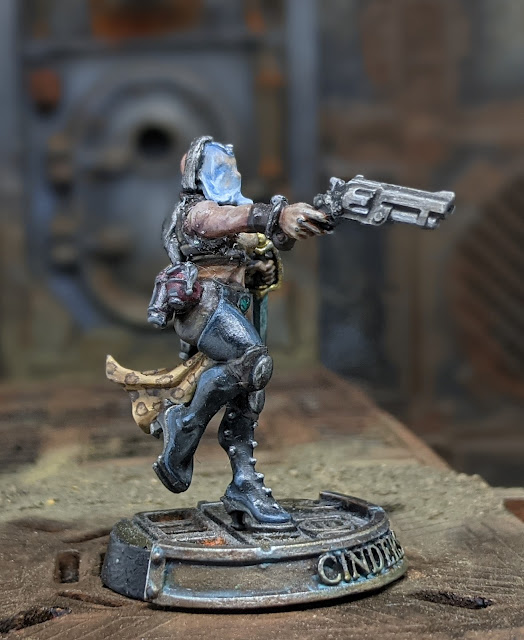 Next up was Cinders. In the new book Juves can no longer take hand flamers so it was back to a Stub Pistol for her. As I was replacing her arm I damaged her ballroom mask and had to replace her head. I opted for the Death Maiden head with the veil (to recover her hideous scars), so what I thought would be a very quick fix became a bit longer than anticipated.